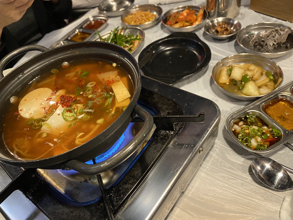 곱창이 나오기전에 버너에 김치국을 끓여봅니다.