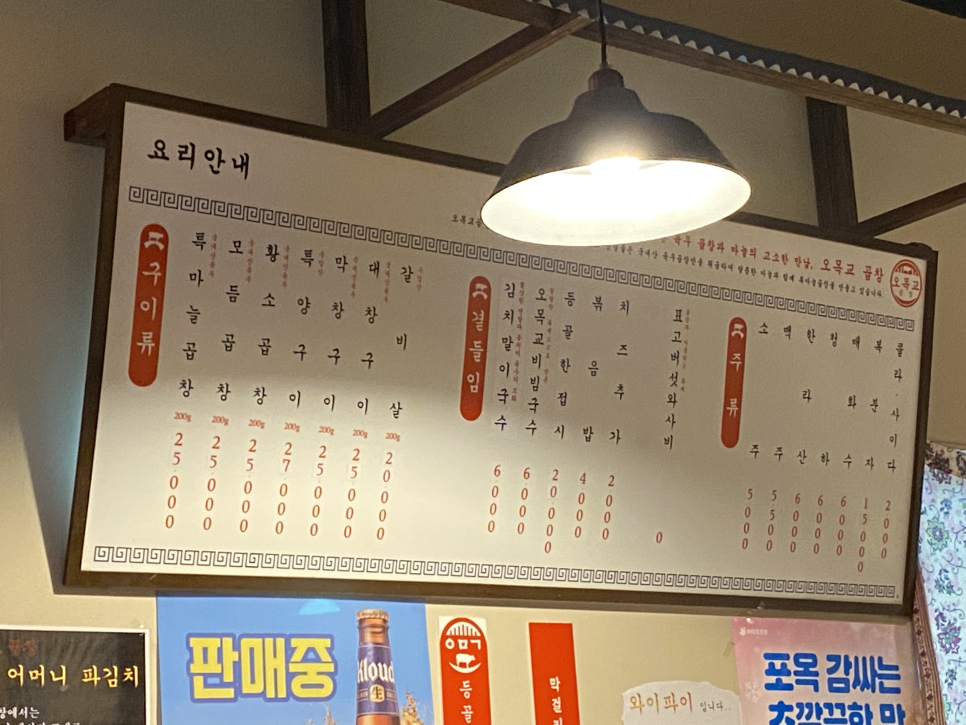 매장을 바로 들어가면 오목교곱창이 자랑하는