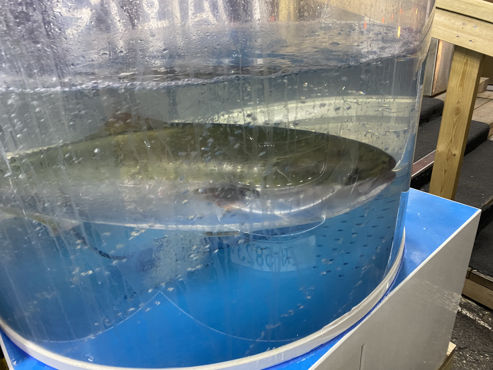 대방어 한마리가 수조에서 헤어치고 있네요.