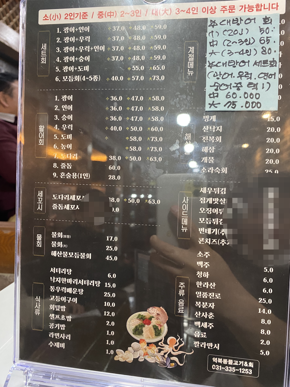 일반 메뉴판 뿐만 아니라 횟집의 특징인