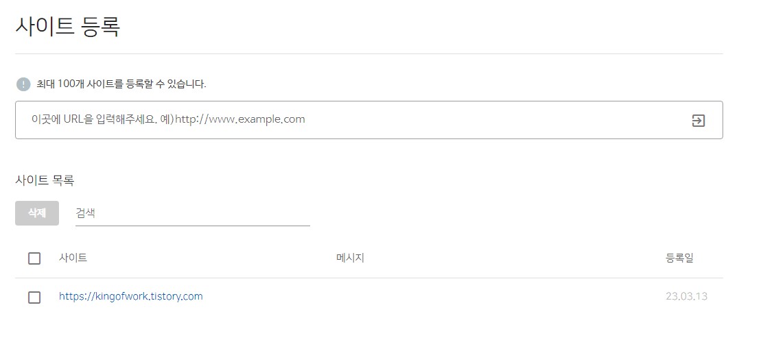 '이곳에 URL을 입력해주세요' 라는 박스에 여러분의 티스토리 블로그 전체 URL을 입력해 주세요.