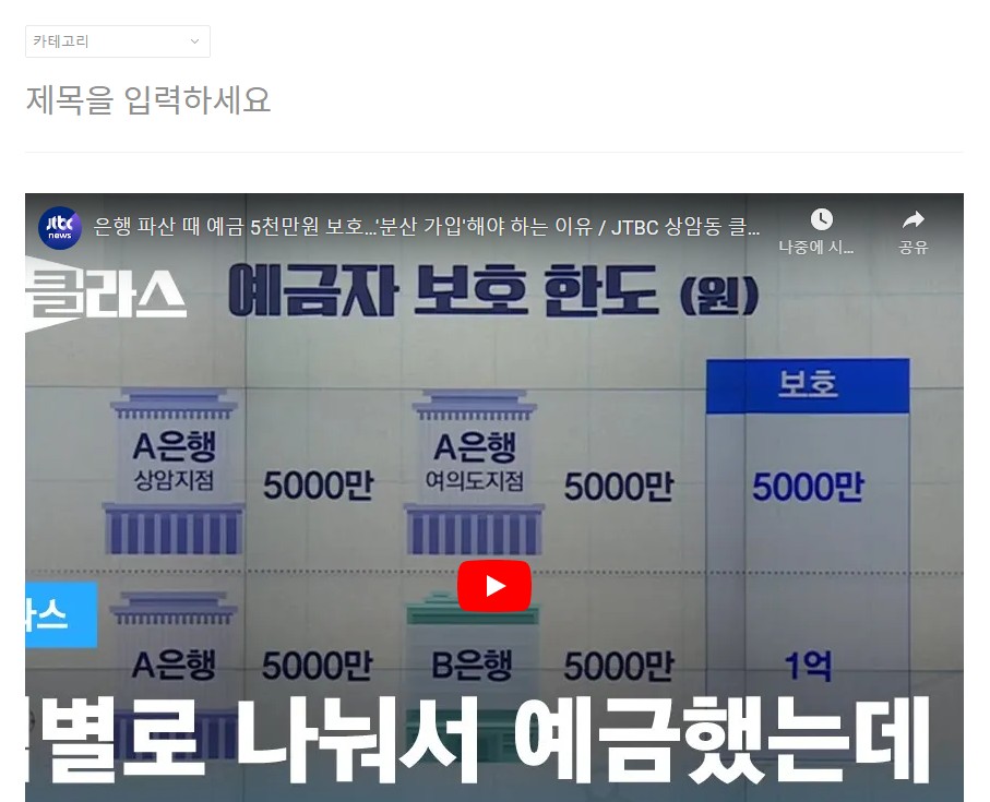 <iframe width="1280" height="720" src="https://www.youtube.com/embed/CaDqJwohyns" title="은행 파산 때 예금 5천만원 보호…'분산 가입'해야 하는 이유 / JTBC 상암동 클라스" frameborder="0" allow="accelerometer; autoplay; clipboard-write; encrypted-media; gyroscope; picture-in-picture; web-share" allowfullscreen></iframe>