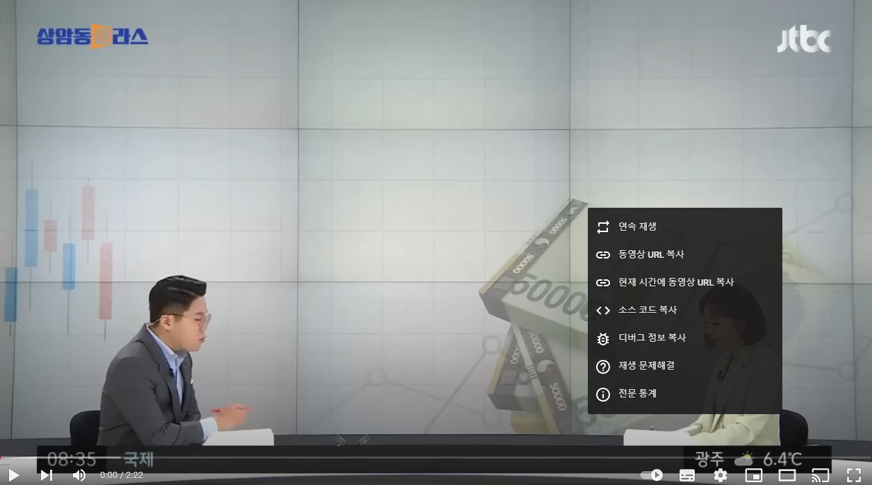 유튜브에 들어가서 영상 재생 후 마우스 오른쪽 버튼을 눌러주세요.