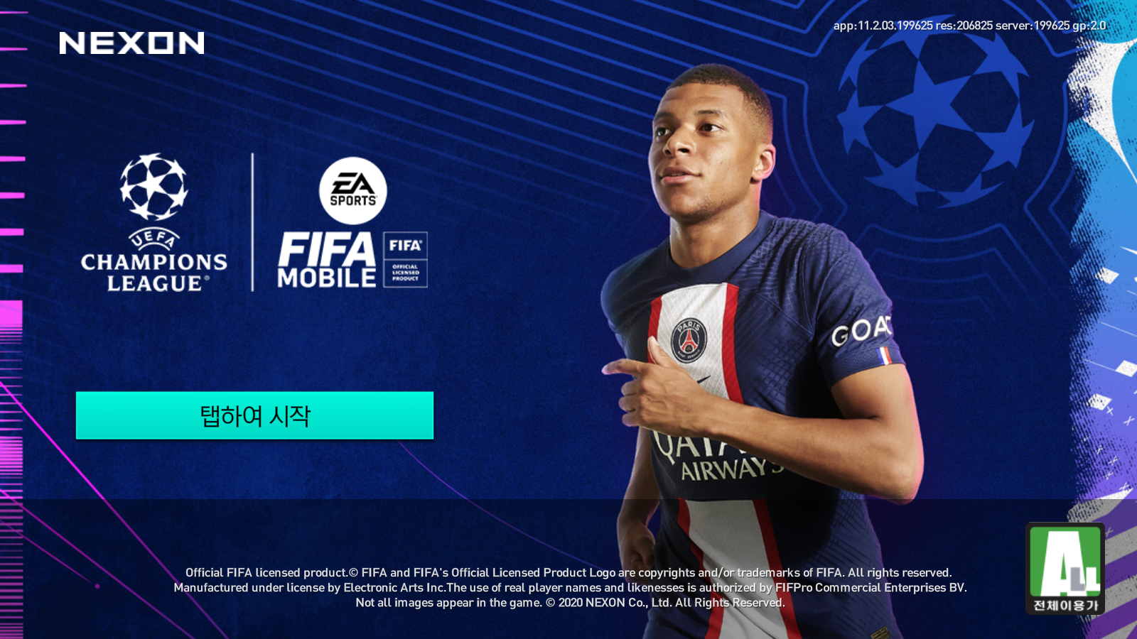 정상적으로 실행되었다면 이렇게 FIFA 모바일 실행화면이 나오게 되고 모바일과 동일하게 시작할 수 있습니다.