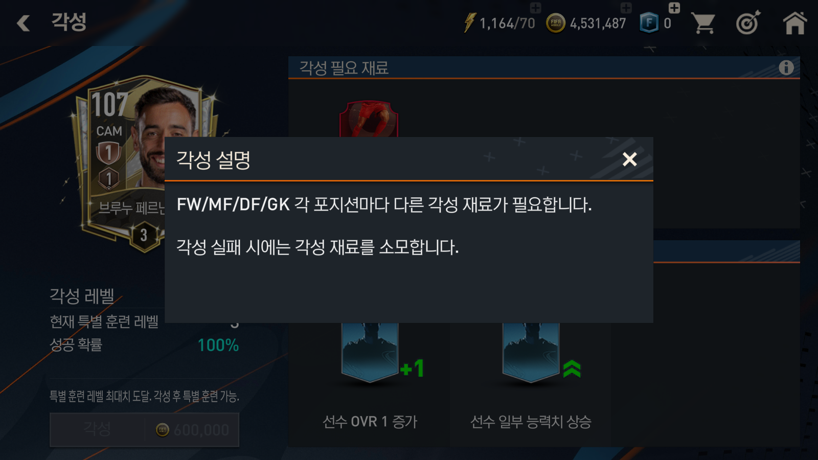 각성 시에 필요한 각성 필요 재료의 경우 FW, MF, DF, GK 각 포지션마다 다른 각성 재료가 필요하기 때문에 각성 재료 구매 시에는 꼭 어떤 포지션 각성 재료가 필요한지 확인 후에 구매가 필요합니다.