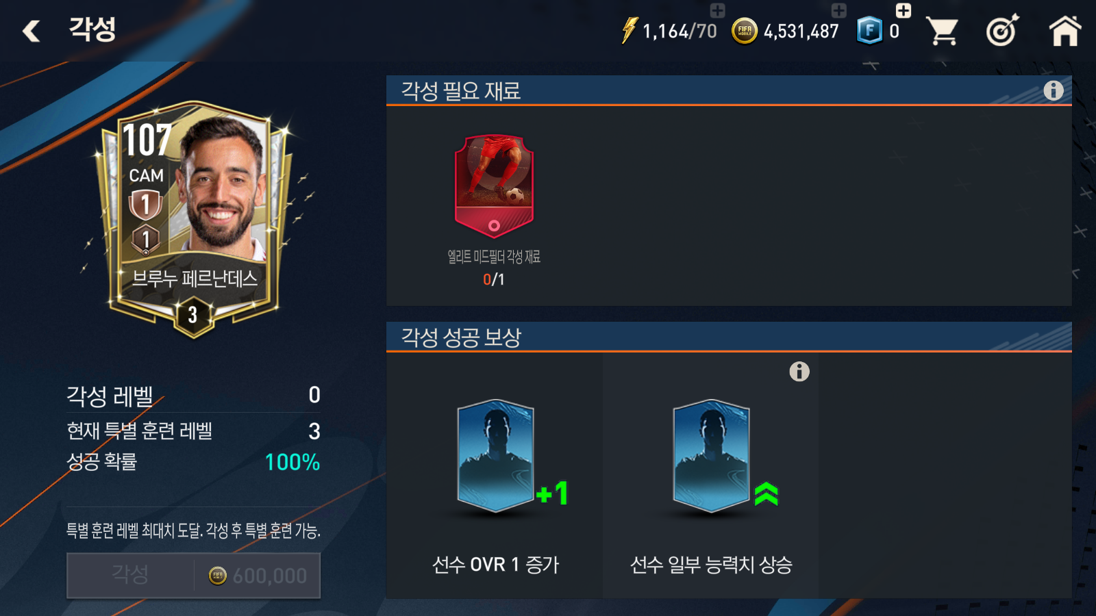 피파모바일 특별훈련 및 각성
