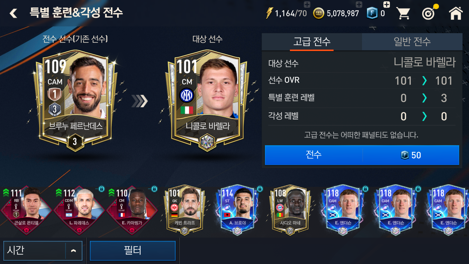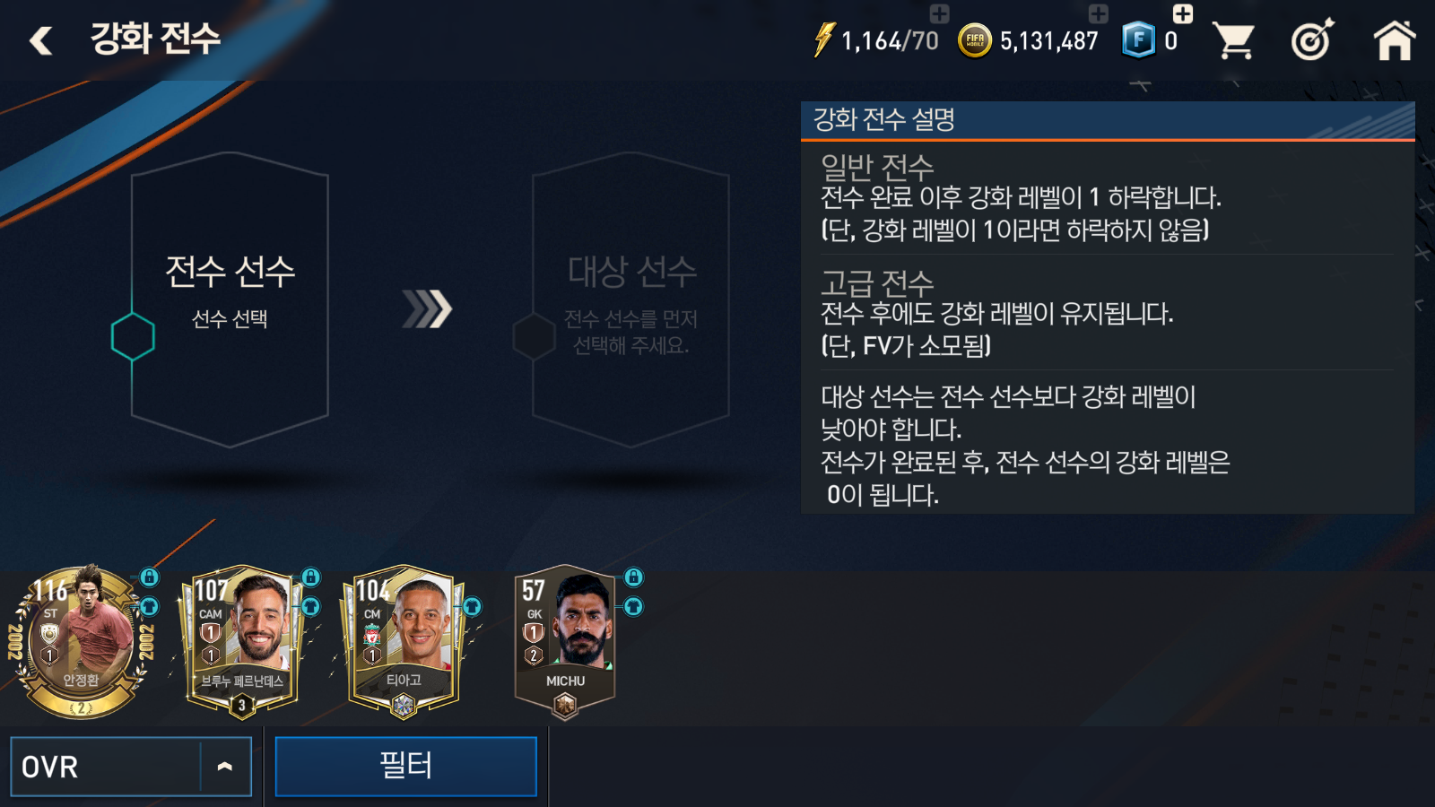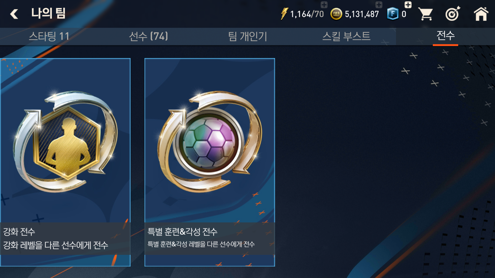 피파모바일 선수 강화 전수 및 특별훈련각성 전수