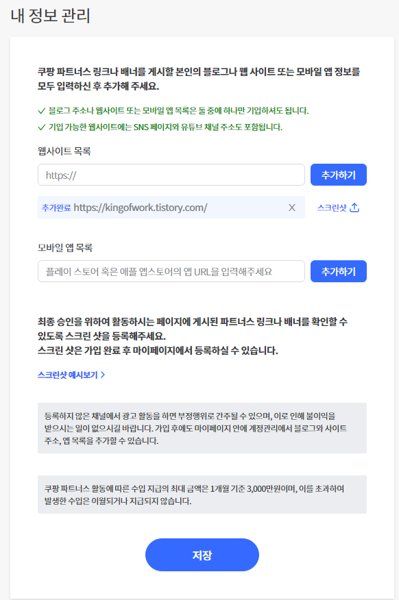 3. 쿠팡 파트너스 승인