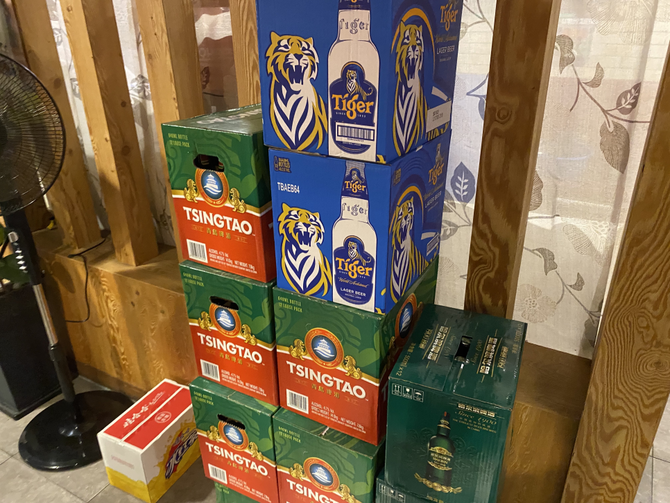 양대 맥주 박스가 쌓여있는 모습을 보고